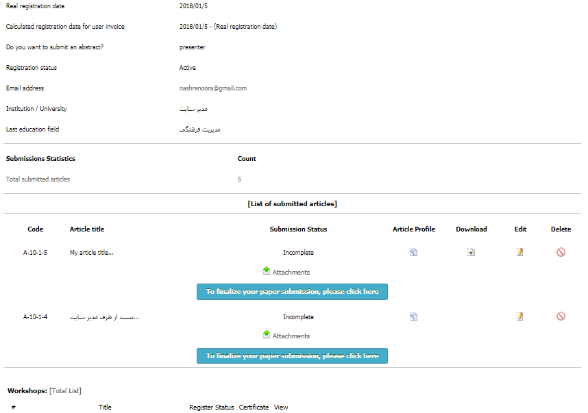 The abstract submitting system, designed to get articles from users, allows you to check the status of an abstract at any time, modify the abstract by users, and make effectively communicate between the executive and the author, for each abstract. This system considered all the steps including registering the writer's profile, registering the abstract's specification, reviewing the abstract's file, announcing the status of the abstract, and commenting on each abstract. The work steps are as follows :